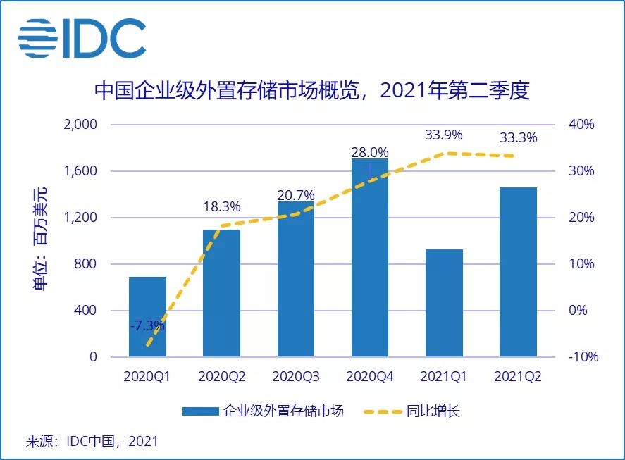 依据IDC近来发布的《我国企业级外部存储商场季度盯梢陈述,2021年第二季度》,全球外置存储商场从2021年一季度开端回温,在二季度得到更强增加,同比上升9.7%,商场规划达69亿美元;从存储阵列看,全闪存体系在二季度同比增加7.6%,总规划超越27亿美元。